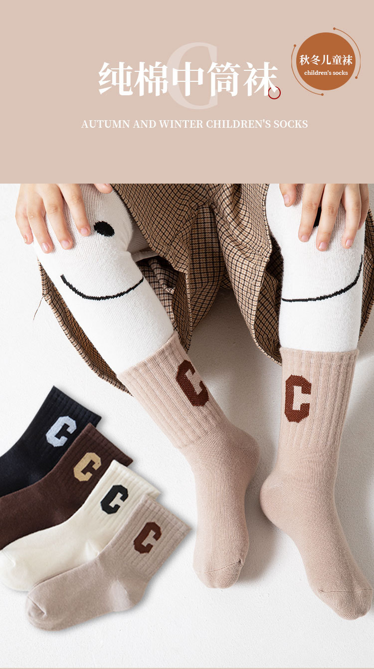 Children's Socks New Letter In Tube Socks Combed Cotton Children's Socks Wholesale Zhuji Japanese Students Socks Winter Children's Socks